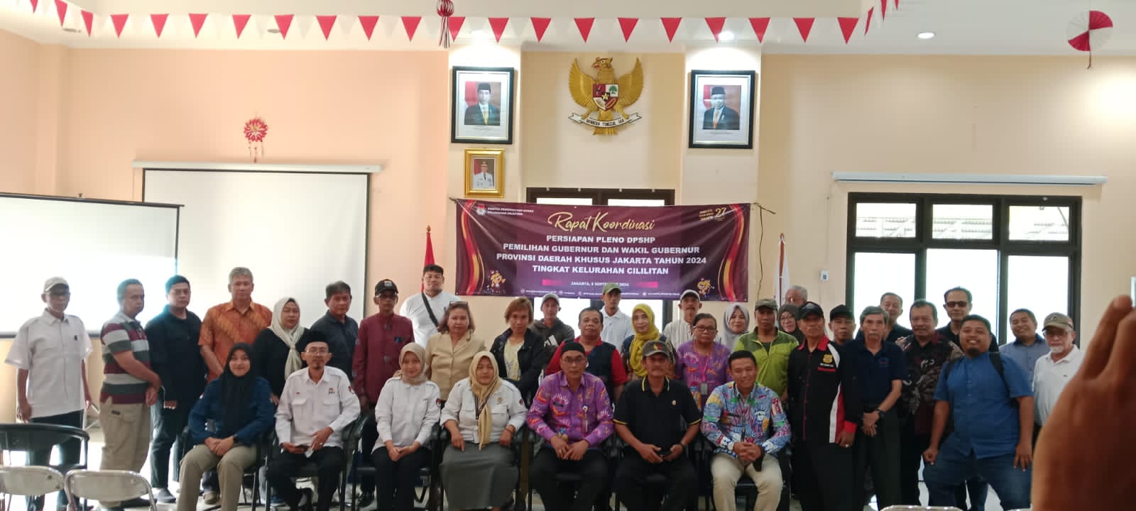 JAKARTA, INDAK.ID. — Panitia Pemungutan Suara (PPS) Kelurahan Cililitan mengadakan Rapat Koordinasi (Rakor) Persiapan Pleno Daftar Pemilih Sementara Hasil Perbaikan (DPSHP) pada Pemilihan Gubernur dan Wakil Gubernur Jakarta tahun 2024 tingkat Kelurahan Cililitan di Aula Kantor Kelurahan Cililitan, Kecamatan Kramat Jati, Kota Administrasi Jakarta Timur, Kamis (5/9/24).
